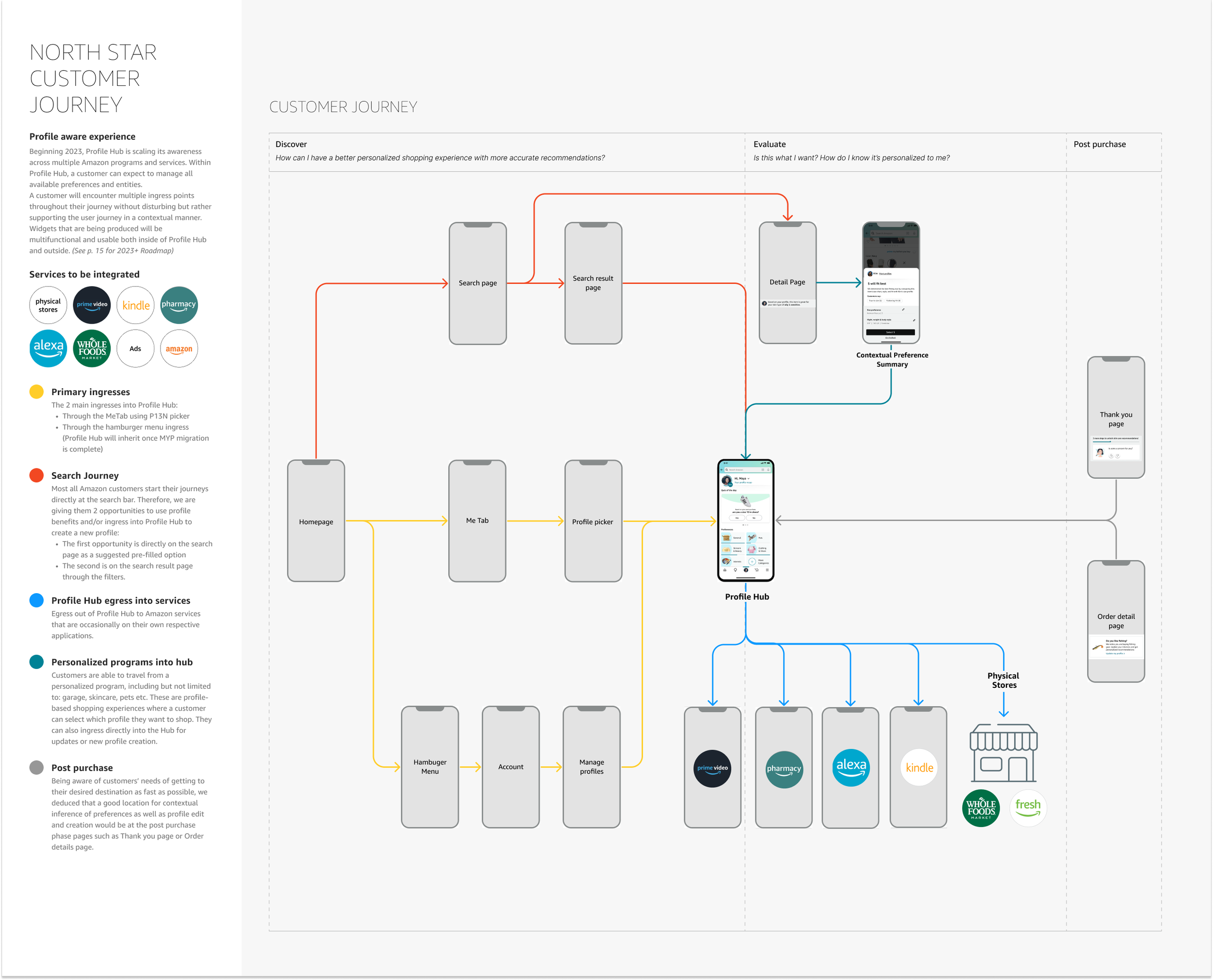 Profile Hub is our North Star CX to enable our vision of “One Amazon” destination for all customers to manage their profile and associated attributes to get personalized experiences across all Amazon offerings of shopping, media, consumption, and advertisement, regardless of wether they ow or share an account, and “One Amazon” destination for all teams to view how customers interact with their preferences.